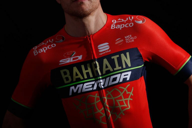 Флаг Бахрейна расположился на верхней части джерси, в этом году Sportful – производитель формы для команды, предложил использовать модель без воротника, на котором раньше был размещён флаг королевства. В центре джерси, спереди и сзади – арабский узор, «сердце» логотипа Bahrain Merida, как сказали в самой команде, «чтобы нашему спортивному руководителю было проще разглядеть наших гонщиков в пелотоне».